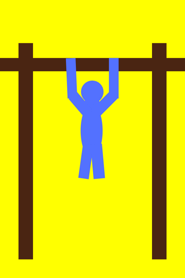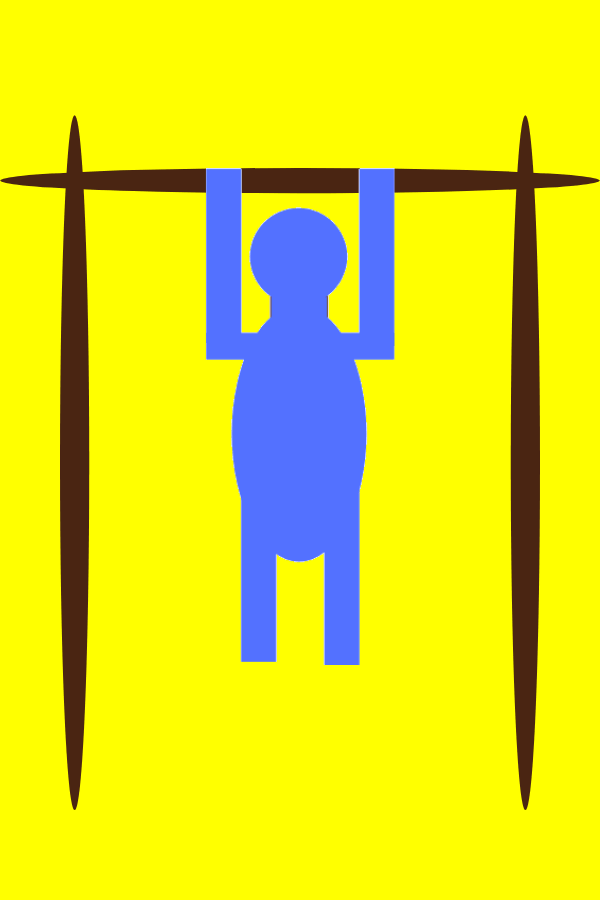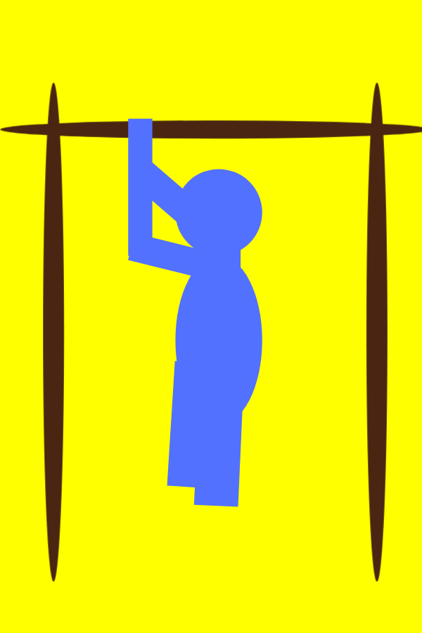 - Grasp the horizontal bar with a grip well outside shoulder width and hang freely