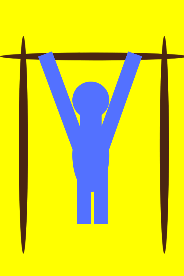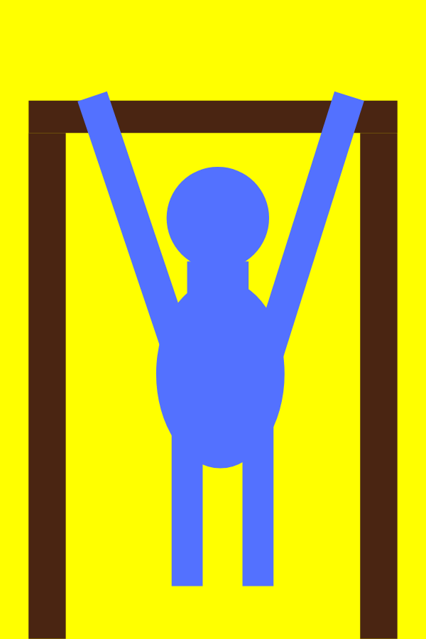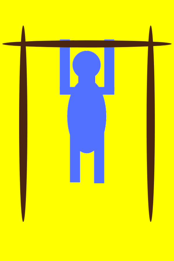 - Assume a wide grip on a pull-up bar and hang so that your feet are not in contact with the ground.